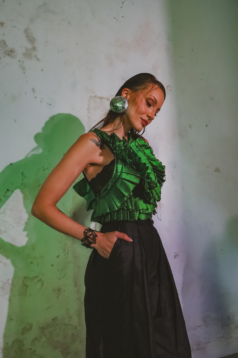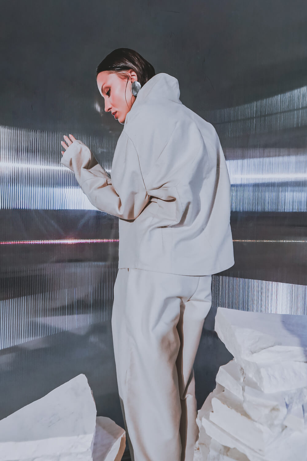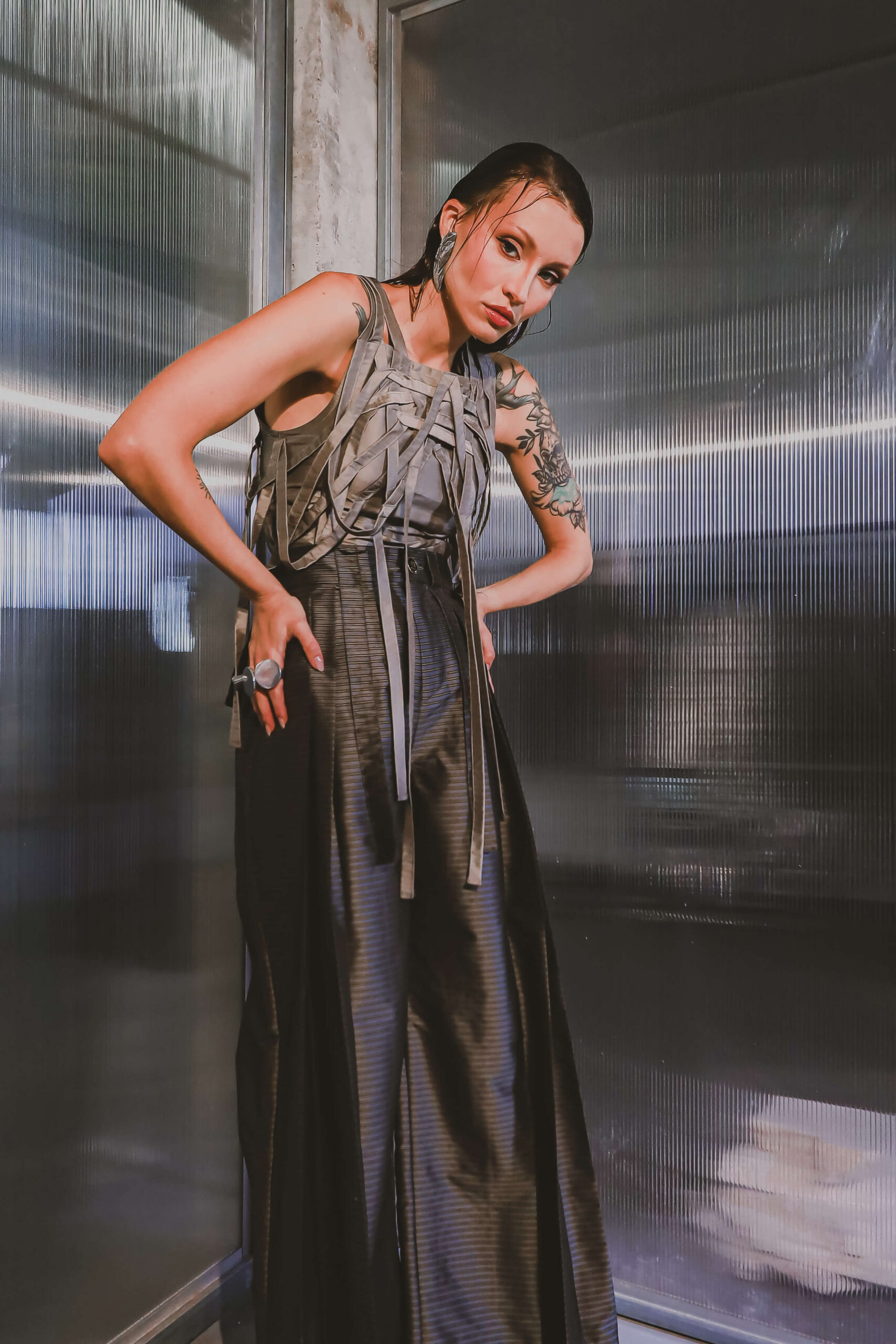 Imaginando o renascimento do planeta, a coleção desenha uma humanidade utópica – seres que habitam o cruzamento entre o orgânico e o sintético, entre a natureza e a máquina. Uma estética que não separa mais, mas funde. Que não descarta, mas renasce. Que não teme a transformação, porque já é, em essência, transformação.