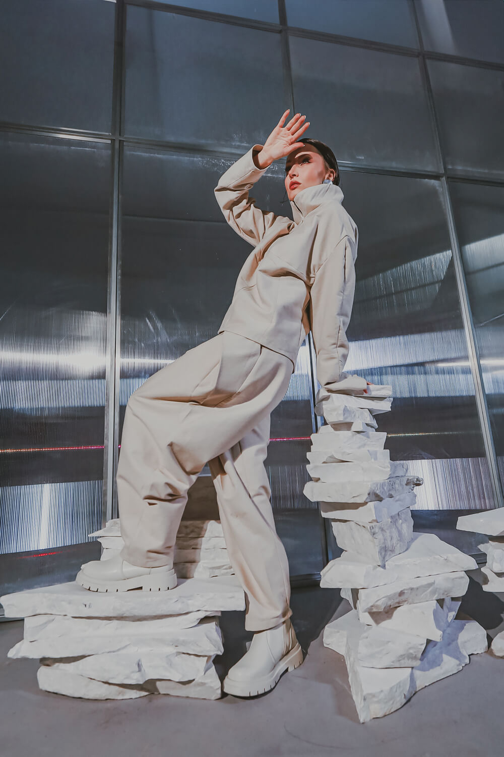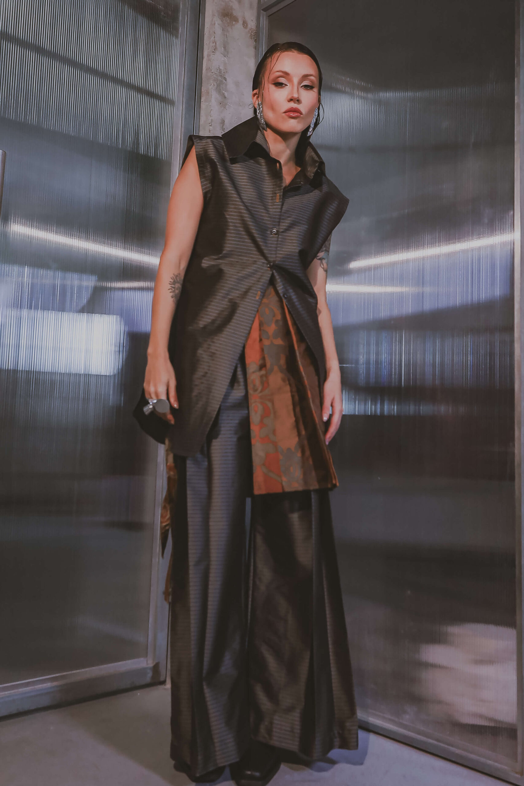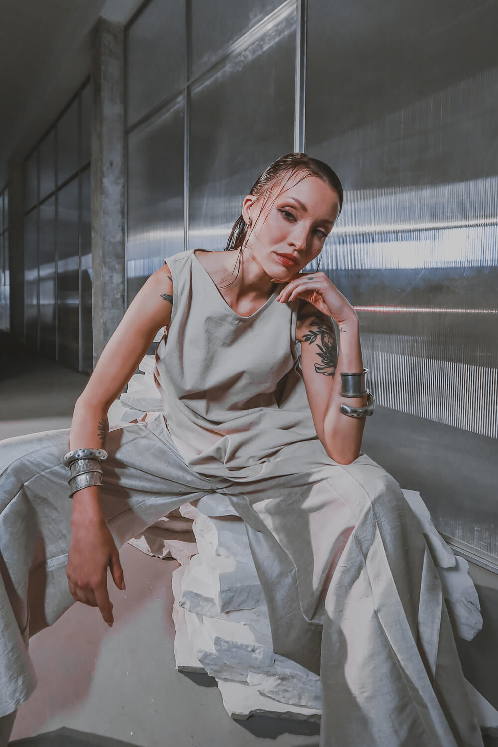 Imaginando o renascimento do planeta, a coleção desenha uma humanidade utópica – seres que habitam o cruzamento entre o orgânico e o sintético, entre a natureza e a máquina. Uma estética que não separa mais, mas funde. Que não descarta, mas renasce. Que não teme a transformação, porque já é, em essência, transformação.